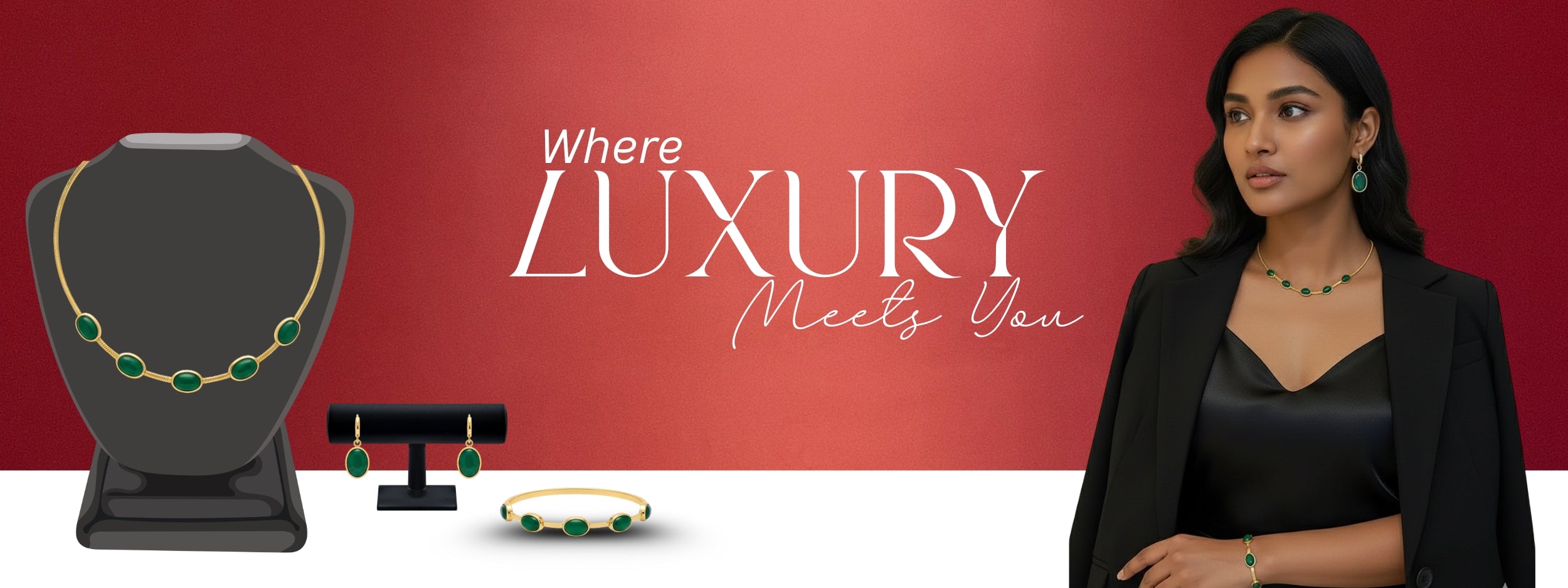 A luxurious blend of rich green stones and premium gold plating, crafted to add timeless sophistication to every outfit.
